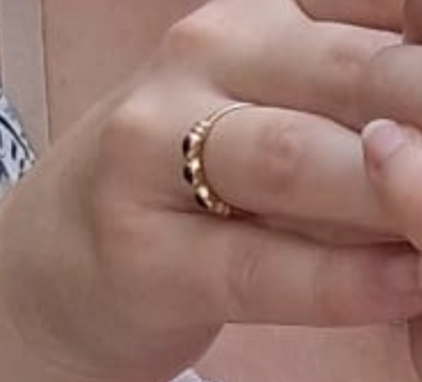 Der Ring hat drei schwarz-rote Steine und keine Gravur.